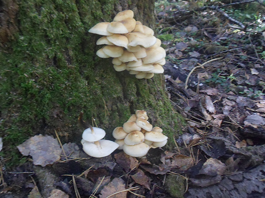 Говорушка дымчатая встречается нередко, но часть из них уже подсохшая. Рядовка фиолетовая попадается единично, да и та червивая. Опенок толстоногий, галльский - Armillaria gallica на валежинах и на почве растёт местами в изобилии, но вид у него не особо аппетитный. Опёнок зимний - три семейки. Что-то рановато... Парочка белых грибов (чистые). ![]() ![]() |