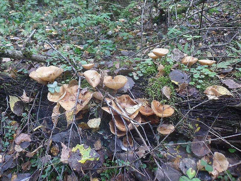 Вчерашний поход позволил собрать десяток рядовок и немного чешуйчатки. Говорушка дымчатая попадалась чаще, вес отварной составил чуть более 800 грамм.
